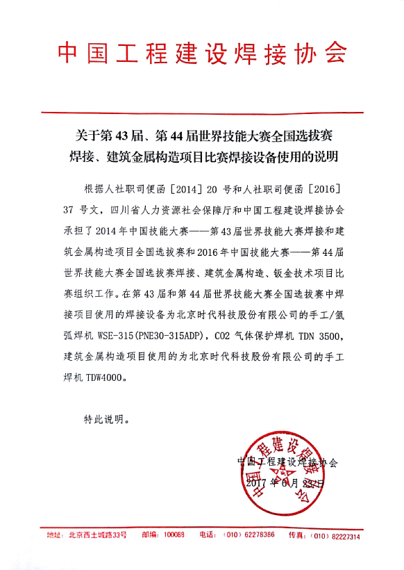 關于第43屆、第44屆世界技能大賽全國選拔賽焊接設備的使用情況