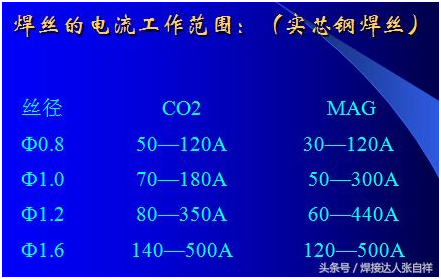 除了以上干伸長度對(duì)焊接的要求以外,對(duì)于送絲輪的使用可以參照上圖,焊接碳鋼、不銹鋼等實(shí)心焊絲采用的送絲輪為V型,焊接鋁合金或藥芯焊絲等材質(zhì)較軟的焊絲可采用U型輪,如果選擇錯(cuò)誤,可能會(huì)出現(xiàn)送絲不暢,參數(shù)匹配有誤等問題,另外,對(duì)于焊絲來講,每一種焊絲都有其焊接范圍,比如,如果采用1.2Mm焊絲,要想焊接500A的電流,就是把調(diào)節(jié)電流放到最大500A,也只能出300多安的電流就是這個(gè)道理,要想焊到500A,只需要不絲徑加到1.6或更粗的焊絲即可。這也是防止焊機(jī)超負(fù)載使用的一個(gè)方法,比如采用60%占載率的氣保500焊機(jī),如果長時(shí)間焊接,那么根據(jù)公式就只能得出380A以內(nèi)可以長時(shí)間焊接,為了避免焊工誤操作,可以選用1.2mm絲徑就不會(huì)出現(xiàn)超負(fù)載應(yīng)用了,具體公式算法及焊絲需用電流表如下: