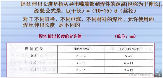 氣保焊的構(gòu)造如上圖所示,在焊接過程中干伸長度的計(jì)算是從導(dǎo)電嘴到工件的距離,而不是從噴嘴到工件的距離,根據(jù)電流的大小,干伸長短也有不同的要求,如超出規(guī)范會(huì)影響焊接的穩(wěn)定性和焊接質(zhì)量。