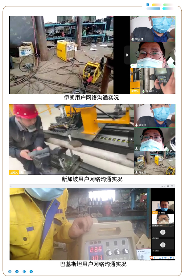 針對(duì)距離遙遠(yuǎn)的海外客戶,北京時(shí)代運(yùn)用互聯(lián)網(wǎng)技術(shù)組織多地區(qū)跨國(guó)境的技術(shù)交流活動(dòng),這是在當(dāng)前全球疫情爆發(fā)的條件下解決雙方技術(shù)溝通的一種創(chuàng)新。各地通過(guò)網(wǎng)絡(luò)共同探討焊接技術(shù)、解決現(xiàn)場(chǎng)遇到的各類問(wèn)題。高效、生動(dòng)、直觀的網(wǎng)絡(luò)交流活動(dòng)拉近了時(shí)代服務(wù)人員和用戶現(xiàn)場(chǎng)的距離,大大提高了工作效率,為客戶解決了不少亟待解決的問(wèn)題。