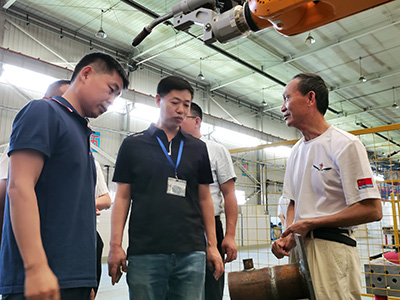 儀式活動開始前,協會各位領導在羅總的陪同下參觀了濟南焊接工業園,同時現場考察和了解了機器人焊接培訓基地的設備狀況、人員狀況和培訓活動開展情況。協會領導針對基地的管理和運轉現狀予以肯定,同時提出了不少寶貴的建議。