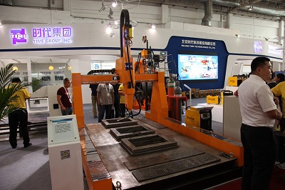 今年時代的展臺上展示了全新型數字化焊接電源、各類自動焊割設備及時代智能機器人。