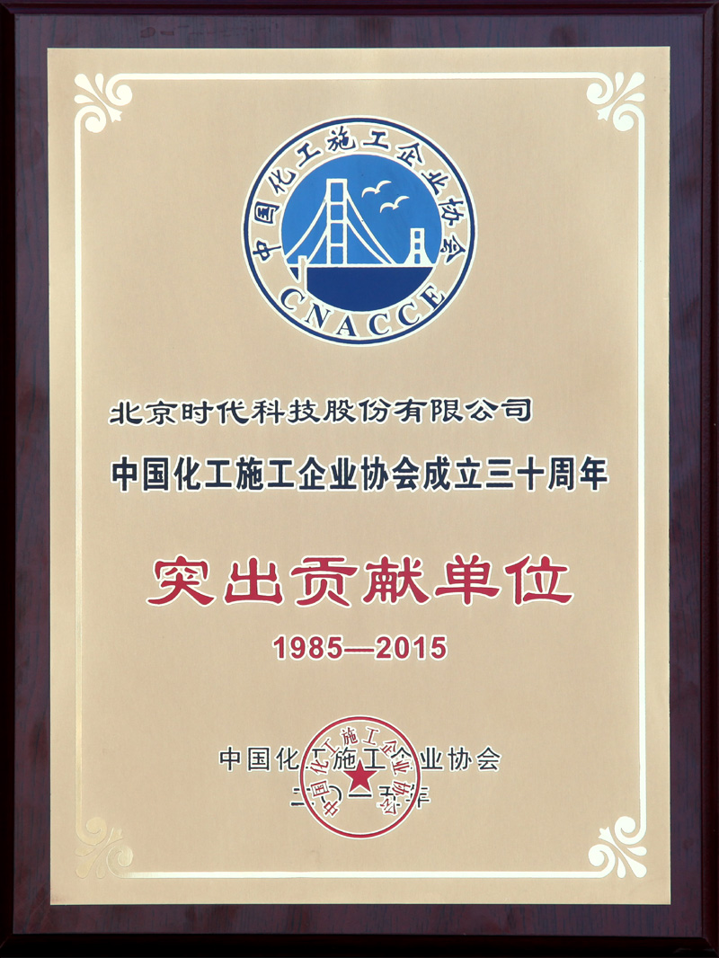 | 2015-10 | 中國化工施工企業協會成立三十周年 突出貢獻單位 | 中國化工施工企業協會 |